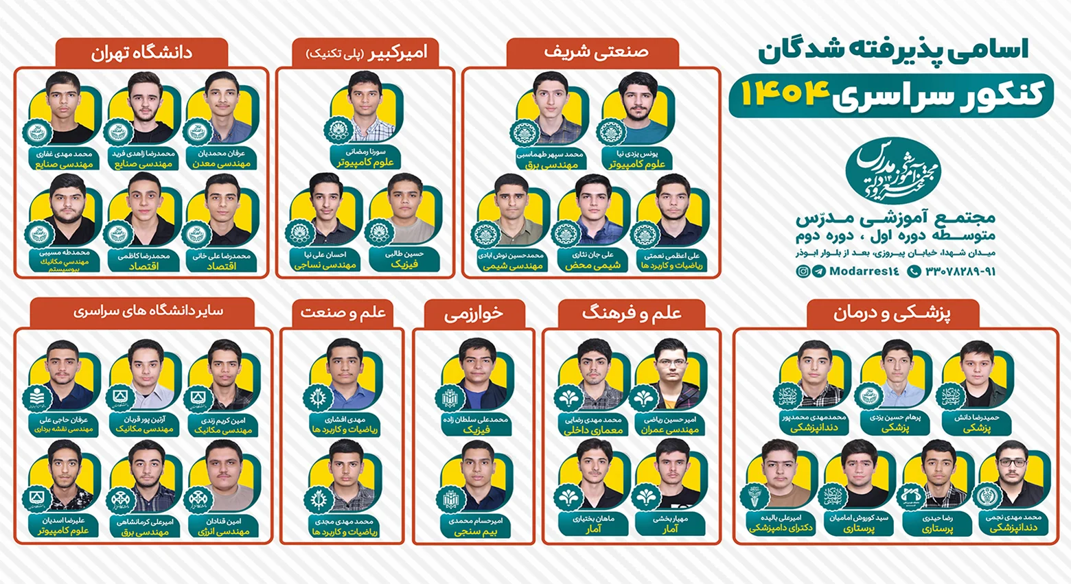 ما به همه فارغالتحصیلان و افتخار آفرینان عزیزمان تبریک میگوییم و امیدواریم که همواره در مسیر موفقیت گام بردارید. شما بخشی از تاریخ مدرّس هستید و ما به داشتن شما افتخار میکنیم!